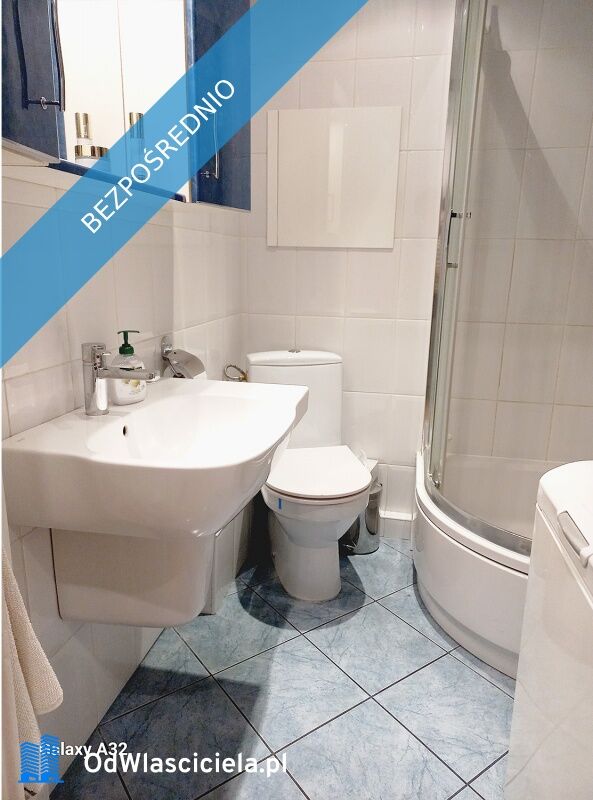 Łazienka: z prysznicem, WC, pralką i szafkami
