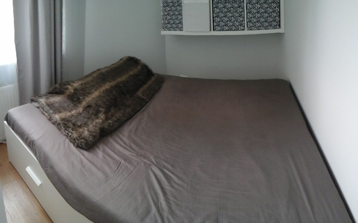 2.POKÓJ : łóżko 160x200 z 4 obszernymi szufladami,firana z zasłoną,regał z pudełkami do przechowywania.
