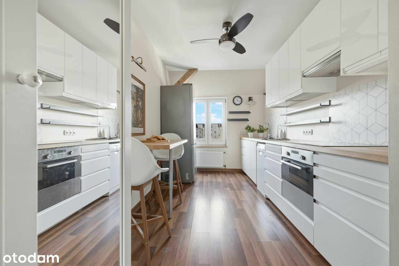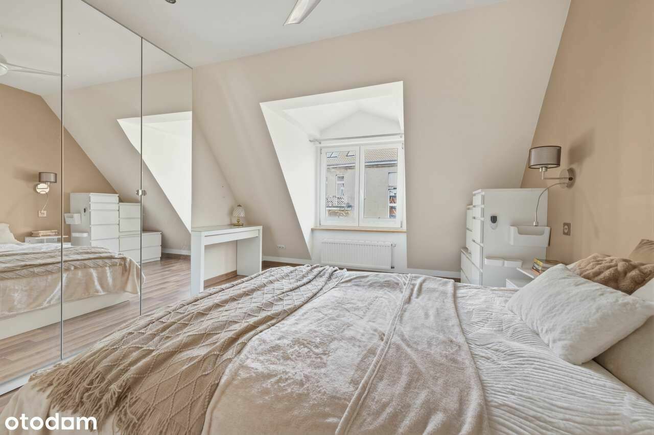 Na sprzedaż mieszkanie o powierzchni 77,6 m², położone na ostatnim piętrze klimatycznej kamienicy. To jedyny lokal na tym poziomie, co zapewnia pełną prywatność i brak bezpośrednich sąsiadów.