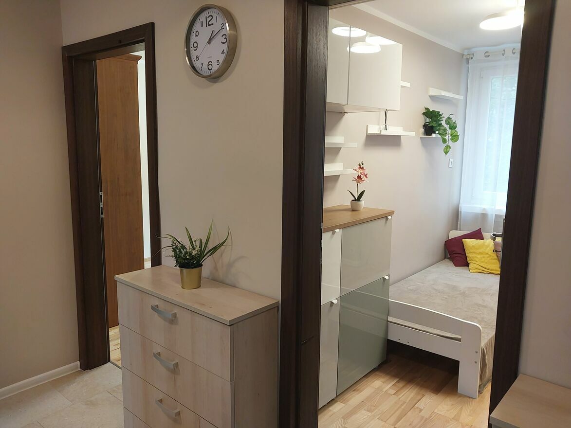 Czteropokojowe mieszkanie, ciche i widne, w Warszawie, przy ul. Góralskiej, blisko stacji metra Księcia Janusza. Piętro 2 z windą w wysokim bloku z lat 80. Bardzo dobrze rozwinięta infrastruktura, w pobliżu Park Moczydło, centrum handlowe Wola Park, przychodnia, sklepy.Rozkład mieszkania: