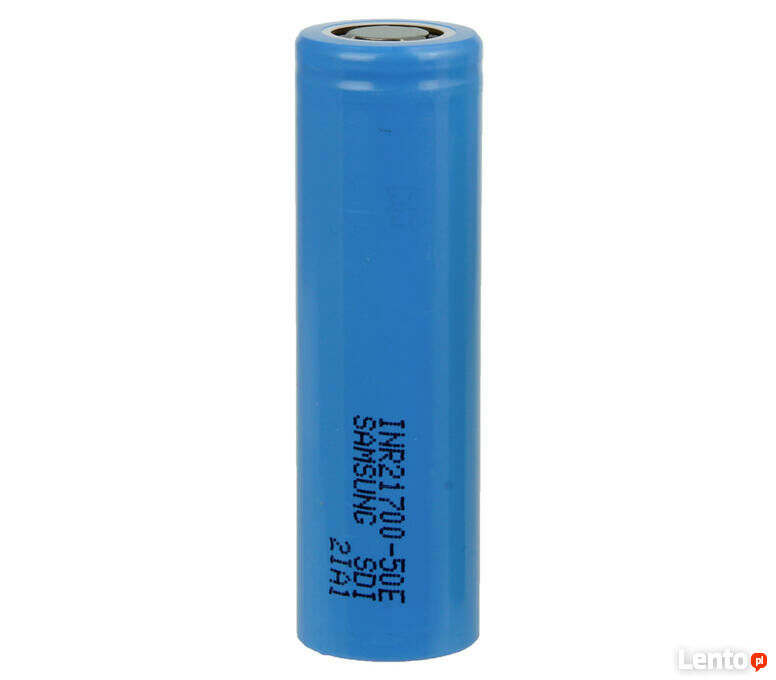 Akumulator Samsung INR21700-50E to przemysłowe ogniwo litowo-jonowe typu 21700 o zwiększonej pojemności 5000mAh firmy Samsung. Jest to ogniwo dedykowane do silnych latarek LED i innych urządzeń wymagających wymagających prądu o natężeniu 9,8A.Akumulator bez zabezpieczenia PCM.