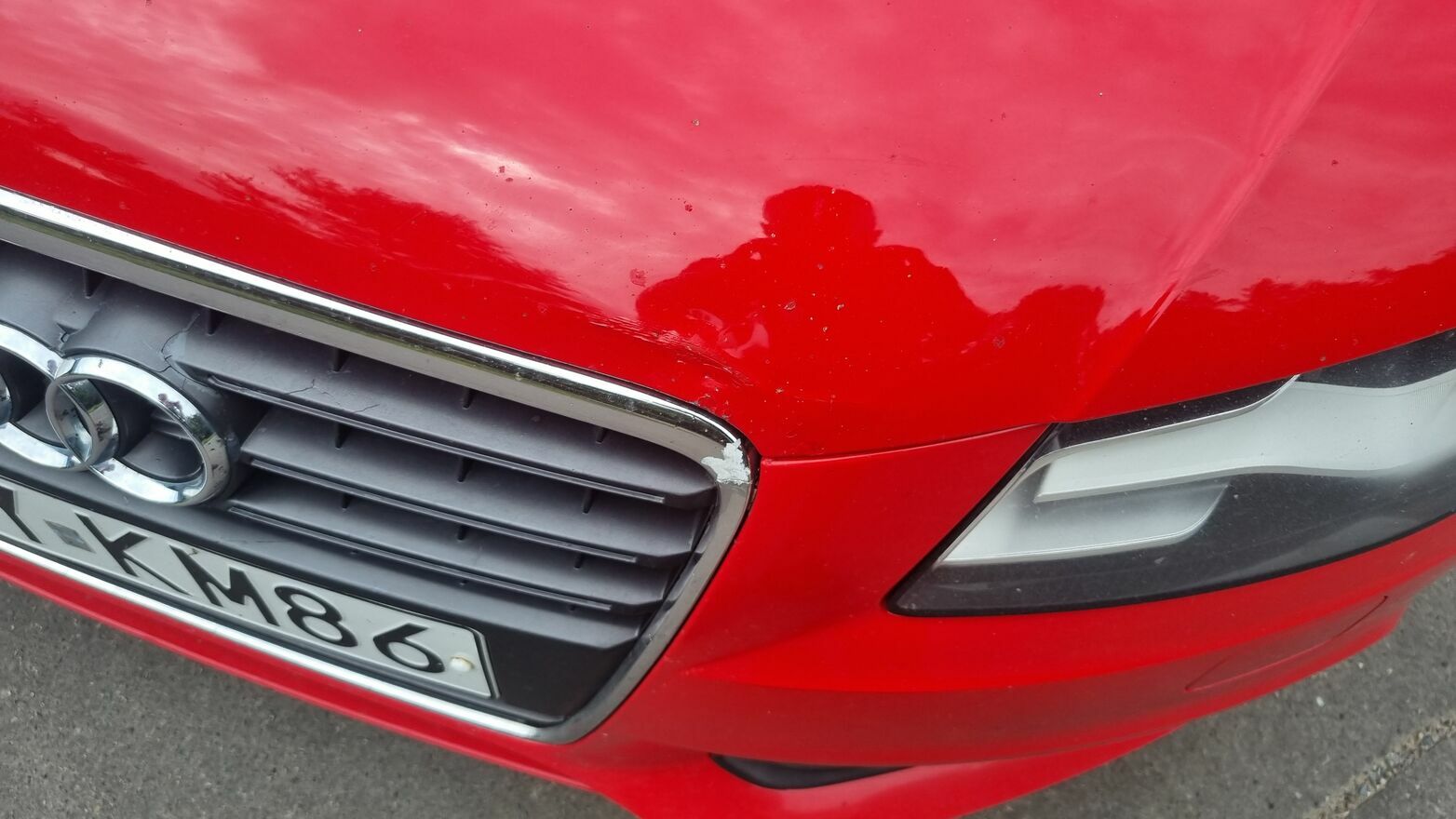 Auto miało kolizję z sarną dlatego lekka wgiotka maski (zdjęcie) oraz pęknięcia na grilu - chłodnica oraz elementy silnika nie tknięte co potwierdza zgłoszenie do ubezpieczalni.