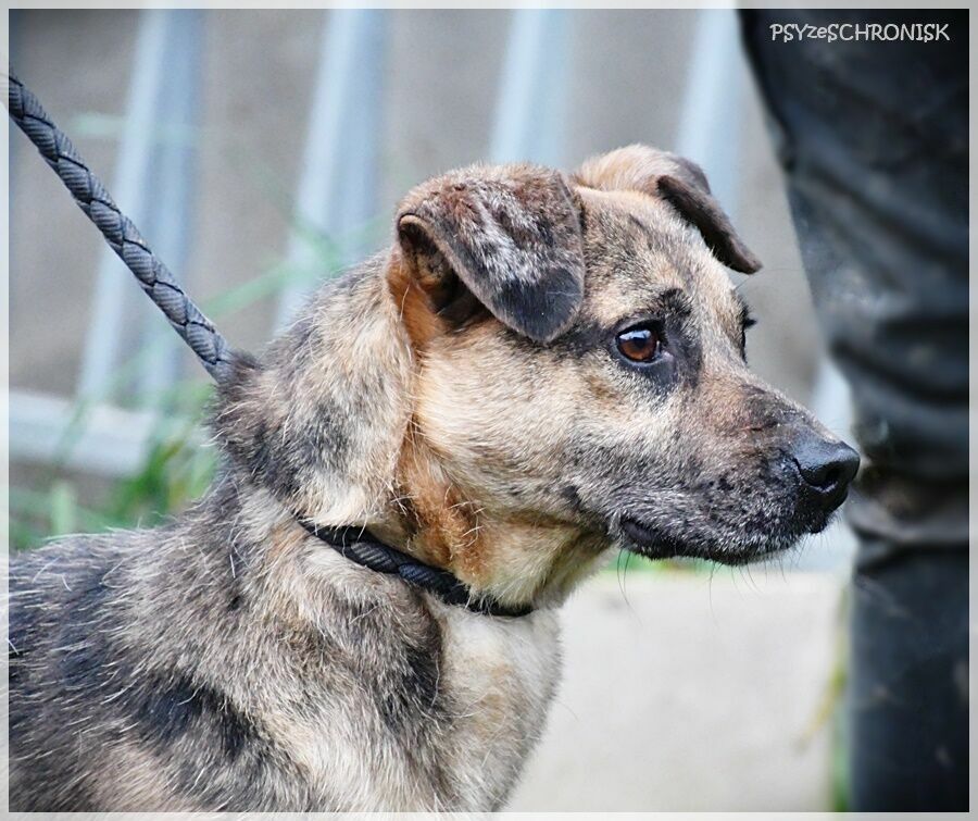 Nie boi się ani - przeciwnie - nie rzuca się na kraty. Kiedy się przy nim przystanie, cieszy się bardzo, w ogóle jest wesołym psem. Chętnie się bawi, nie wzgardzi spacerami (choć o nich w schronisku raczej może zapomnieć), zaprzyjaźni się od razu, jeśli tylko będzie miał z kim.
