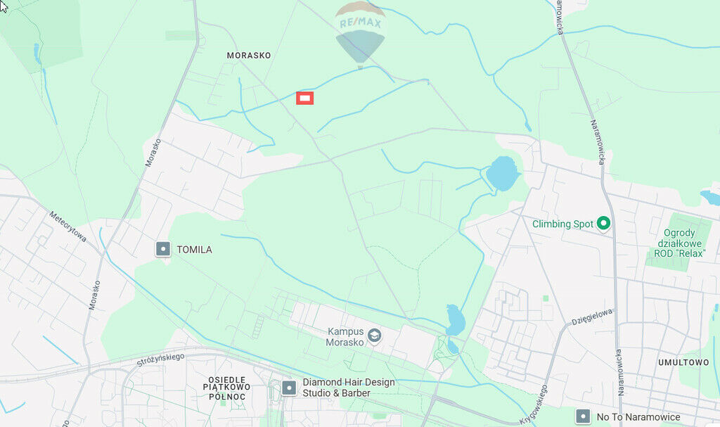 działki ok. 100 m). Możliwy dojazd od ul. Morasko (przez ul.