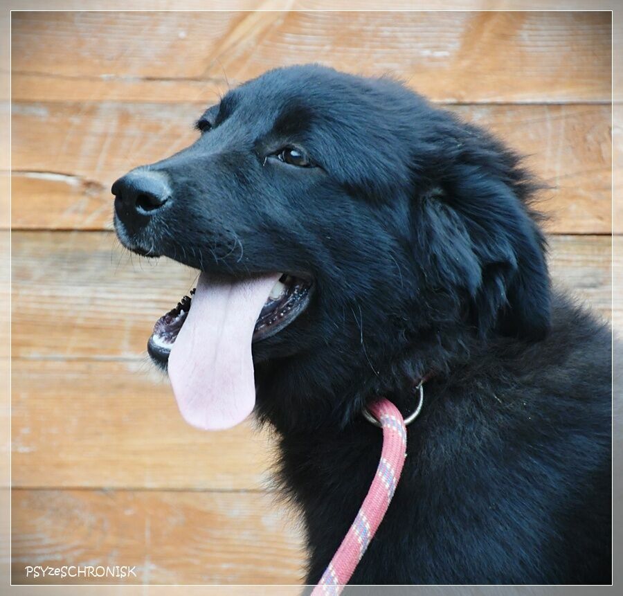 Jest dużym, uroczym szczeniakiem, a grube łapy wskazują, że wyrośnie na dużego psa. Odważna, wesoła, trochę gapowata. Na szczęście, mimo tego, że dzieciństwo upływa jej w schronisku, jest bardzo ufnym szczeniakiem i wyrywa się do ludzi.