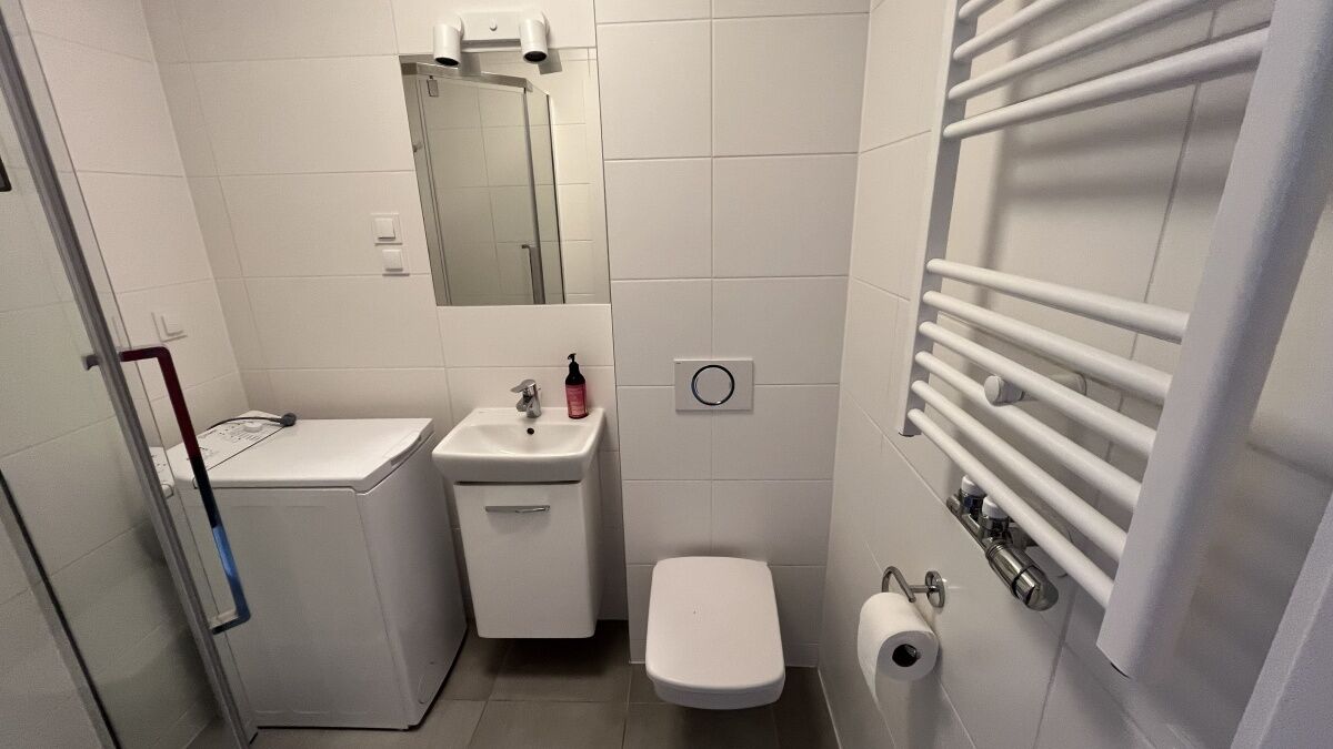 Łazienka z prysznicem i wc.