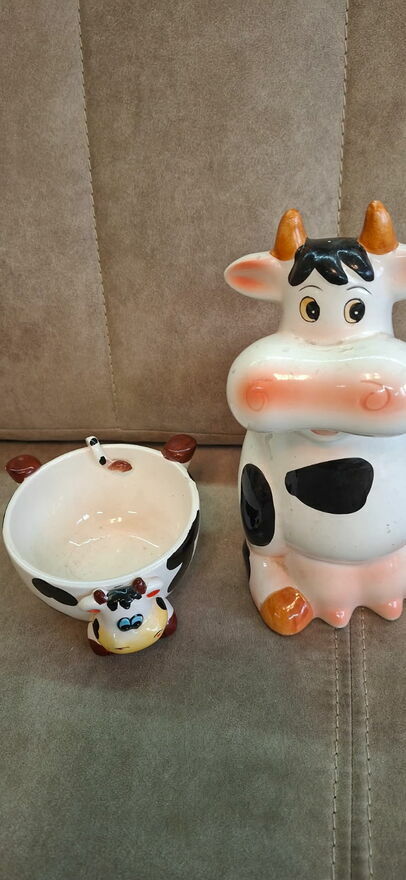 Witam .Mam do sprzedania Ceramiczny zestaw ręcznie malowany w kształcie Krówek .Majka