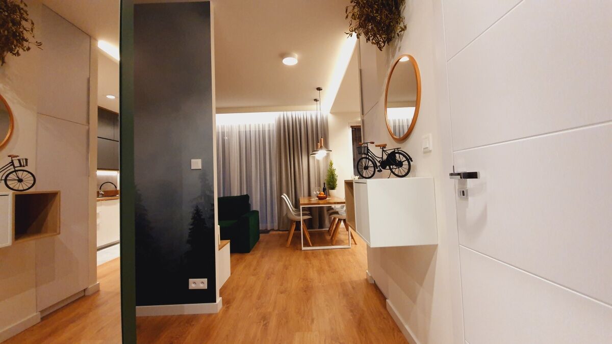 Mieszkanie zostało zaprojektowane i wykończone w taki sposób, aby korzystanie z niego umożliwiało komfortowe funkcjonowanie dla maksymalnie dwóch osób.