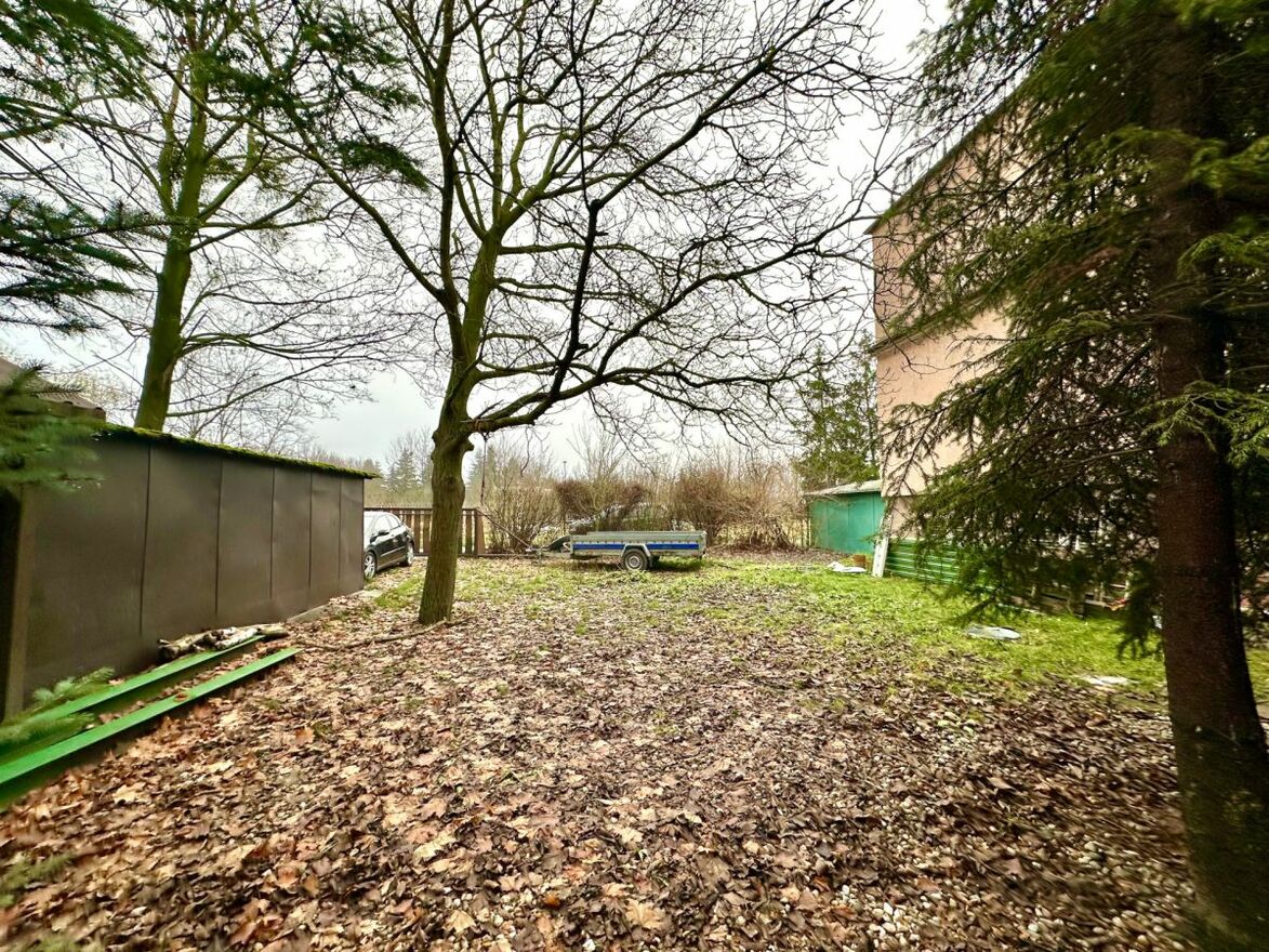Na posesji znajdują się dwa garaże, a cały teren jest ogrodzony (front: parkan na podmurówce, pozostała część - siatka). Nieruchomość jest w pełni uzbrojona i posiada bezpośredni dostęp do drogi publicznej. Wokół dostępne są liczne miejsca postojowe.