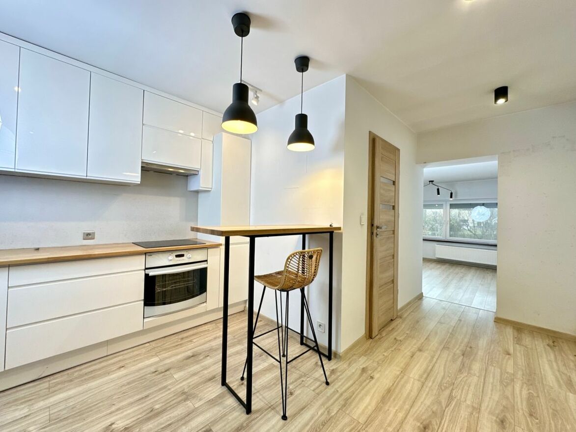 2 pokoje, widna kuchnia, łazienka, korytarz.