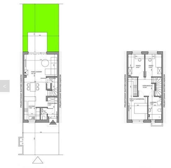 Ustawny dom szeregowy, o powierzchni całkowitej ok. 120,2 m2 ( użytkowej ok. 94 m2 ) z działką ok. 130 m2.