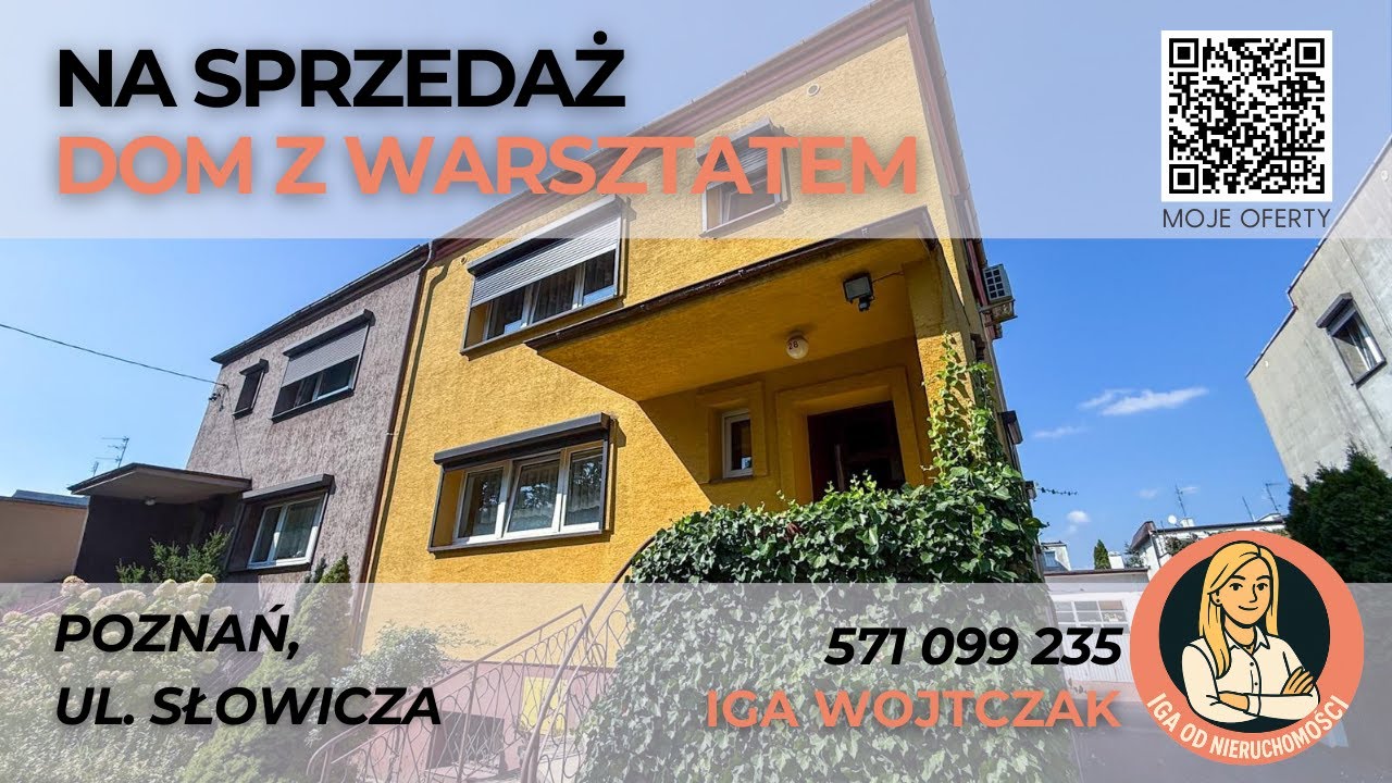 Dom rodzinny z warsztatem - wyjątkowa okazja w PoznaniuNa sprzedaż dom w zabudowie bliźniaczej (rok budowy 1965) położony w spokojnej części Poznania, w otoczeniu zieleni, a jednocześnie z szybkim dojazdem do centrum. To idealna propozycja dla osób, które szukają przestronnego miejsca do życia oraz dodatkowej przestrzeni na pasję lub własny biznes.
