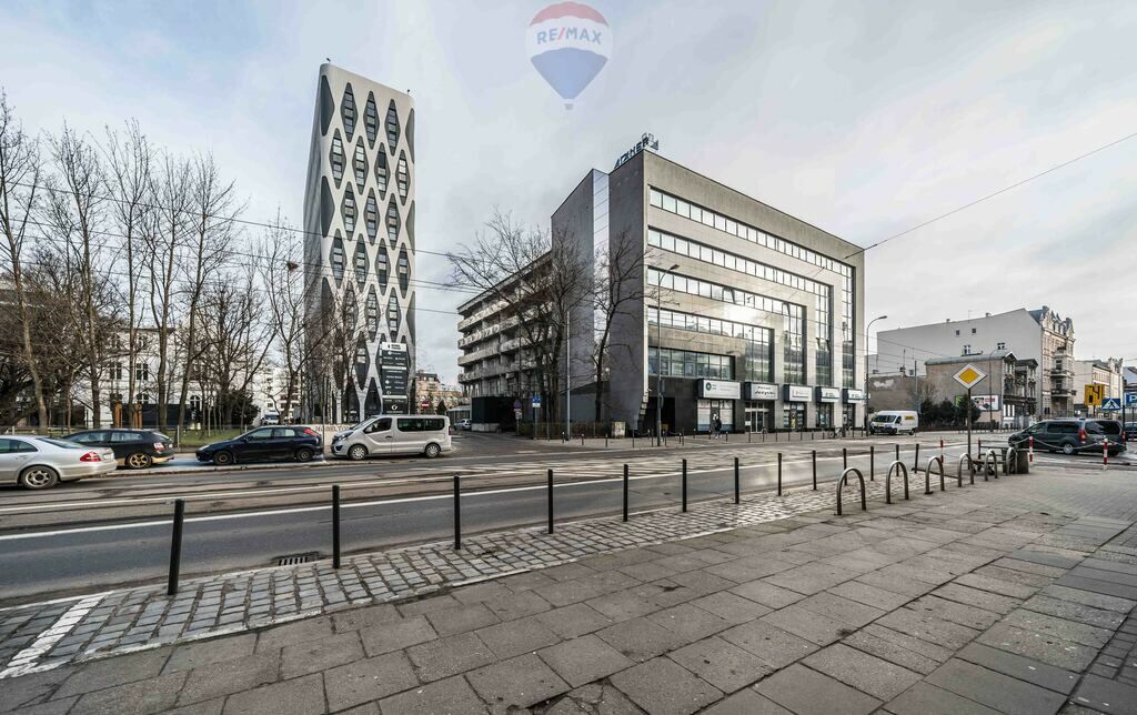 ruchliwej ulicy, w sąsiedztwie charakterystycznego budynku Nobel