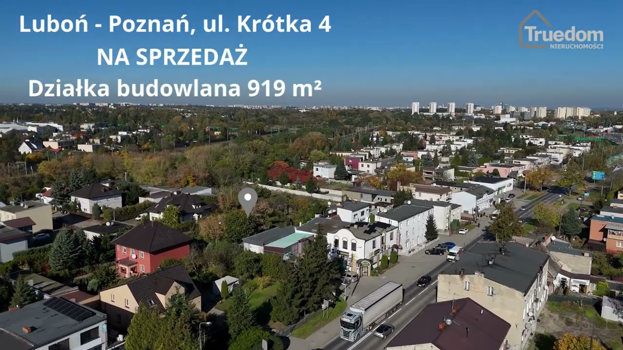 Działka budowlana 919 m² Luboń, ul. Krótka 4Świetna lokalizacja! Blisko Poznania, A2 i terenów zielonych. Idealna pod dom jednorodzinny.