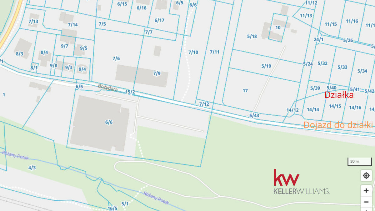 Atrakcyjna działka budowlana położona w pierwszej linij zabudowy na Poznańskich Naramowicach przy Ul Bożydara zaraz koło Potoku RóżanegoKształt działki to prostokąt o powierzchni 1147m2 i wymiarach szerokość 25m, długość bok 46m.