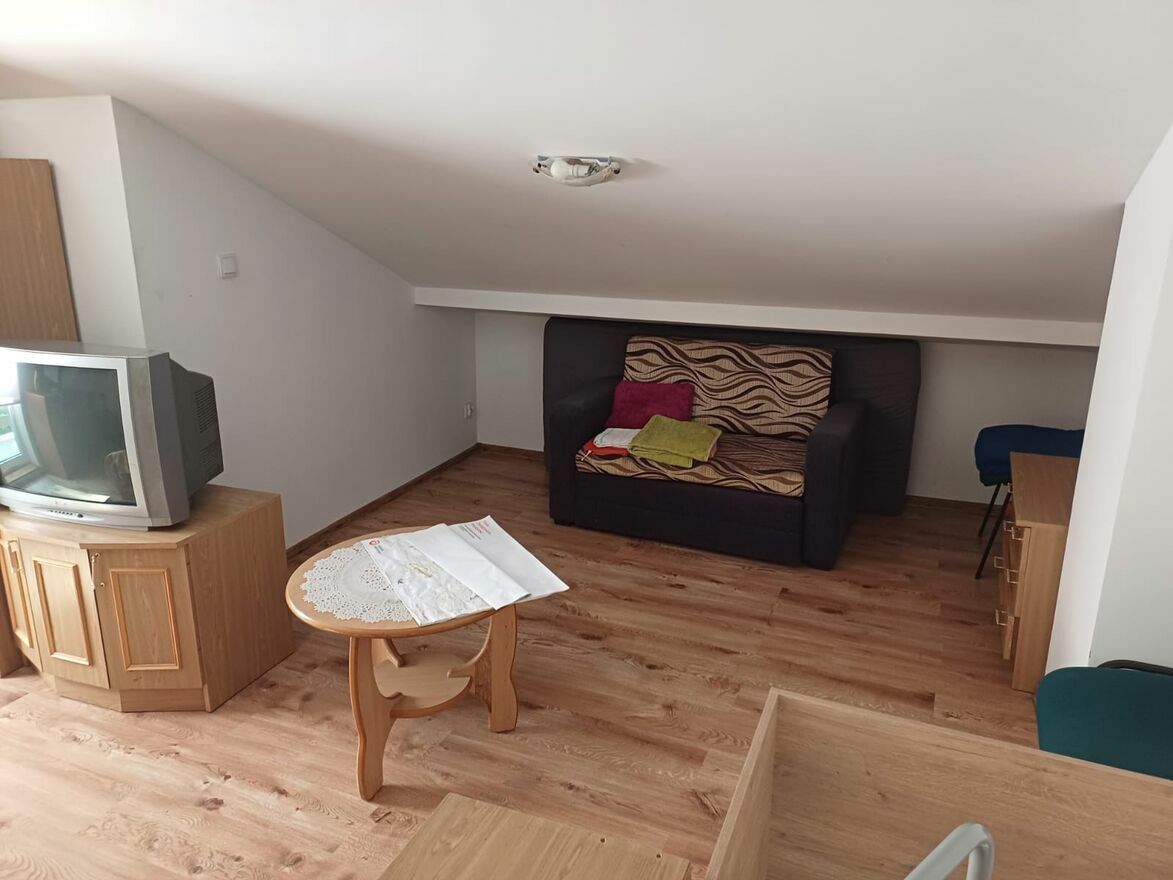 • Parter: przestronny salon z aneksem kuchennym, łazienka (WC, prysznic)