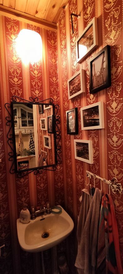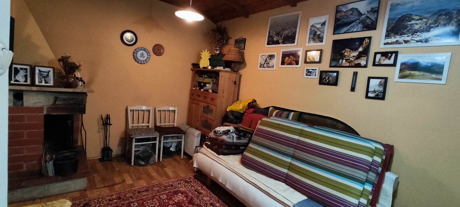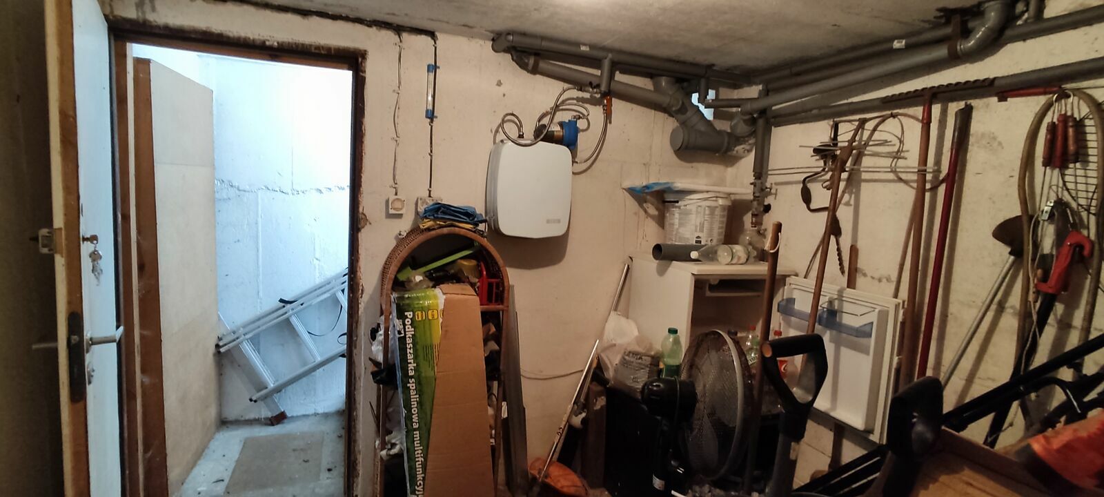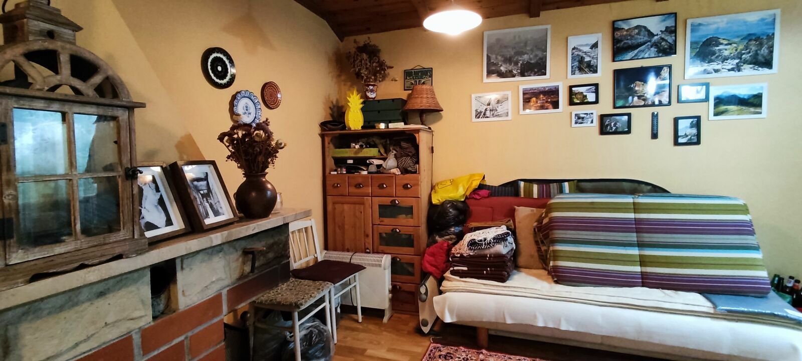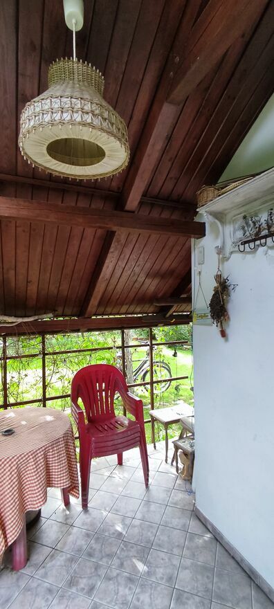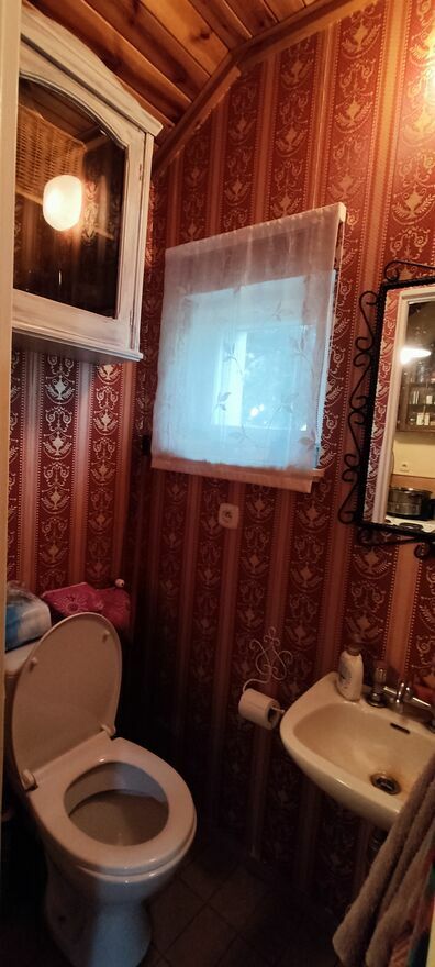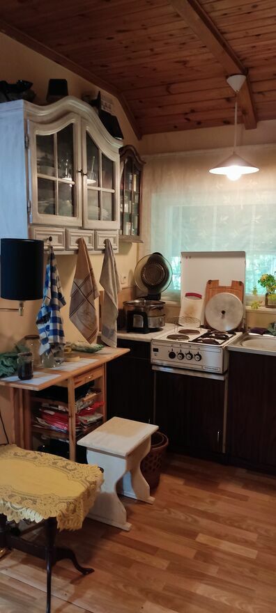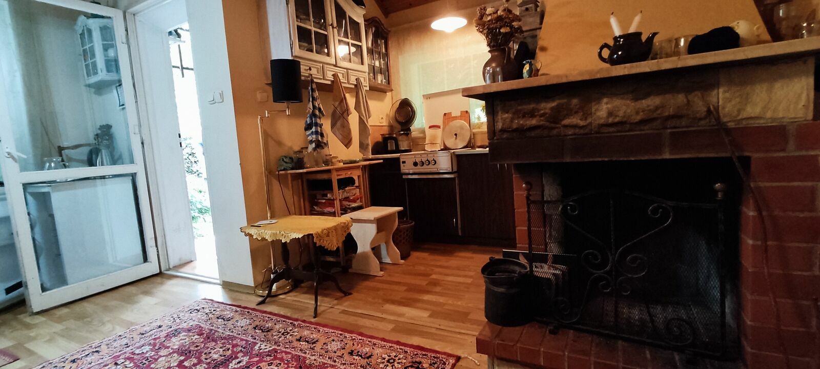 Domek z piwnicą, 2 pomieszczenia, salon z aneksem kuchennym z kominkiem , toaleta.