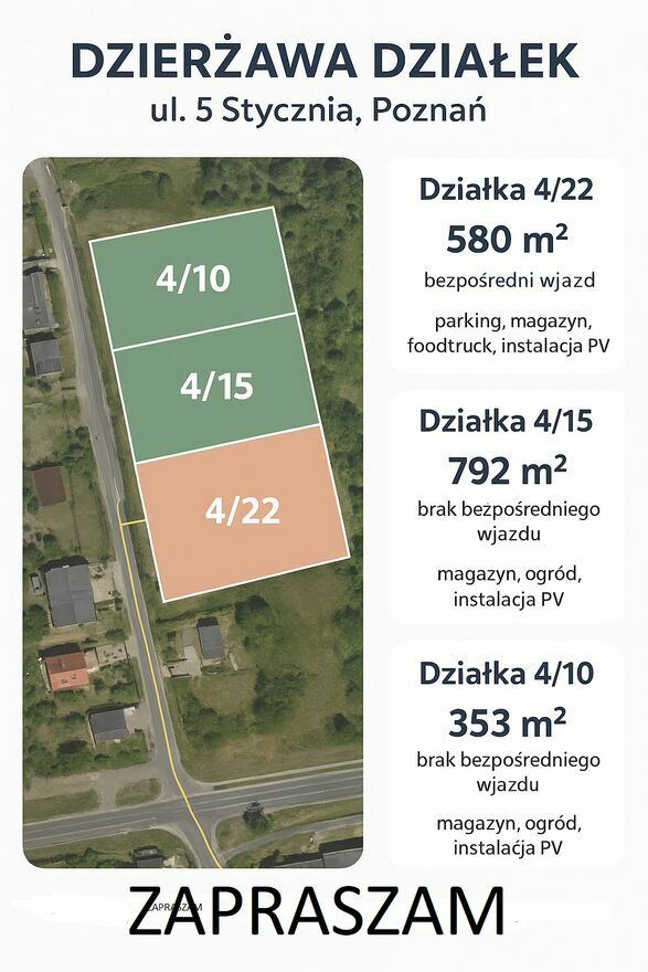 Dzierżawa działki 792 m² przy ul. 5 Stycznia w Poznaniu – dojazd przez sąsiednią działkę
