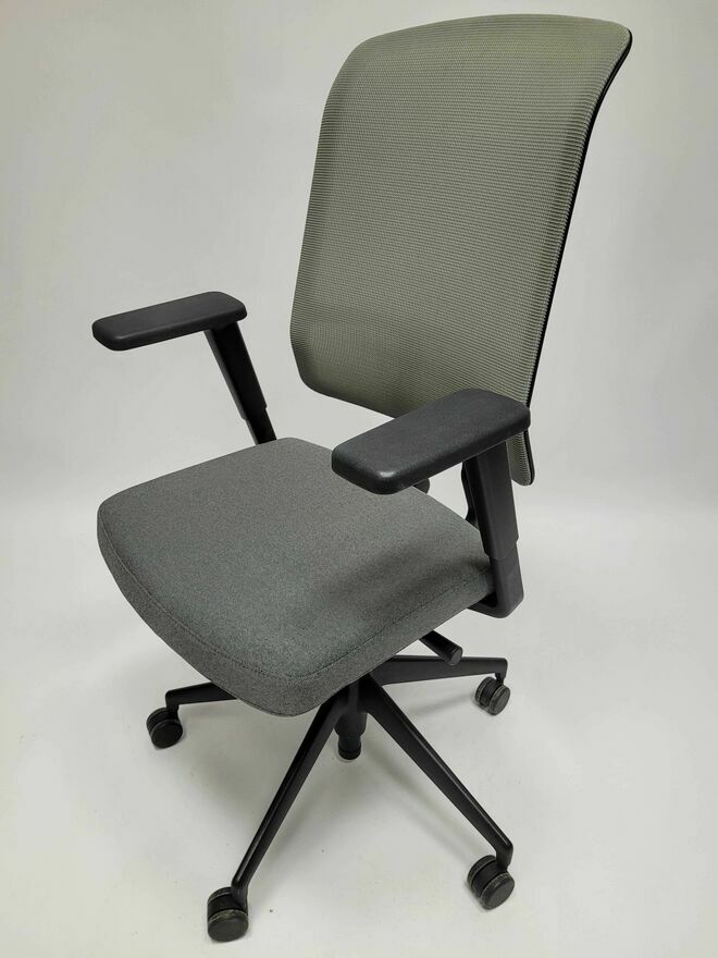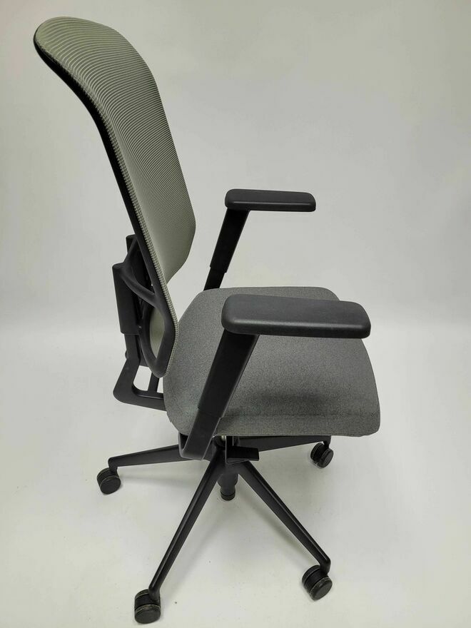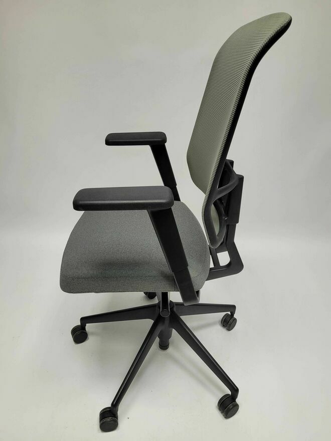 - Oparcie: oparcie z siatki LightNet, naciągnięte na ramę; oparcie z tkaniny Plano (odwrotna strona z tkaniny Verso, kolor sierra grey). Rama oparcia z poliamidu w kolorze głębokiej czerni. Oparcie z regulacją wysokości w standardzie.