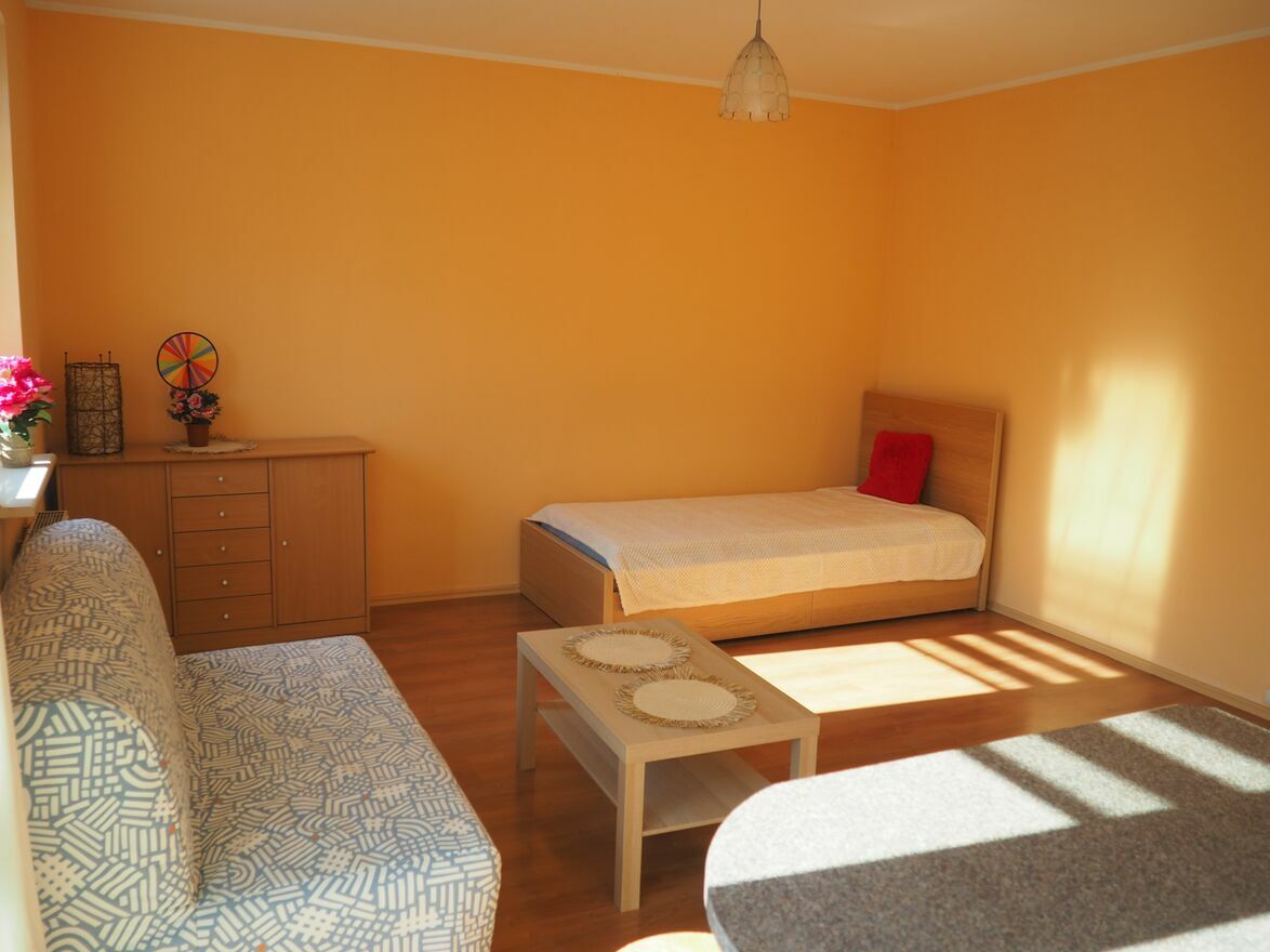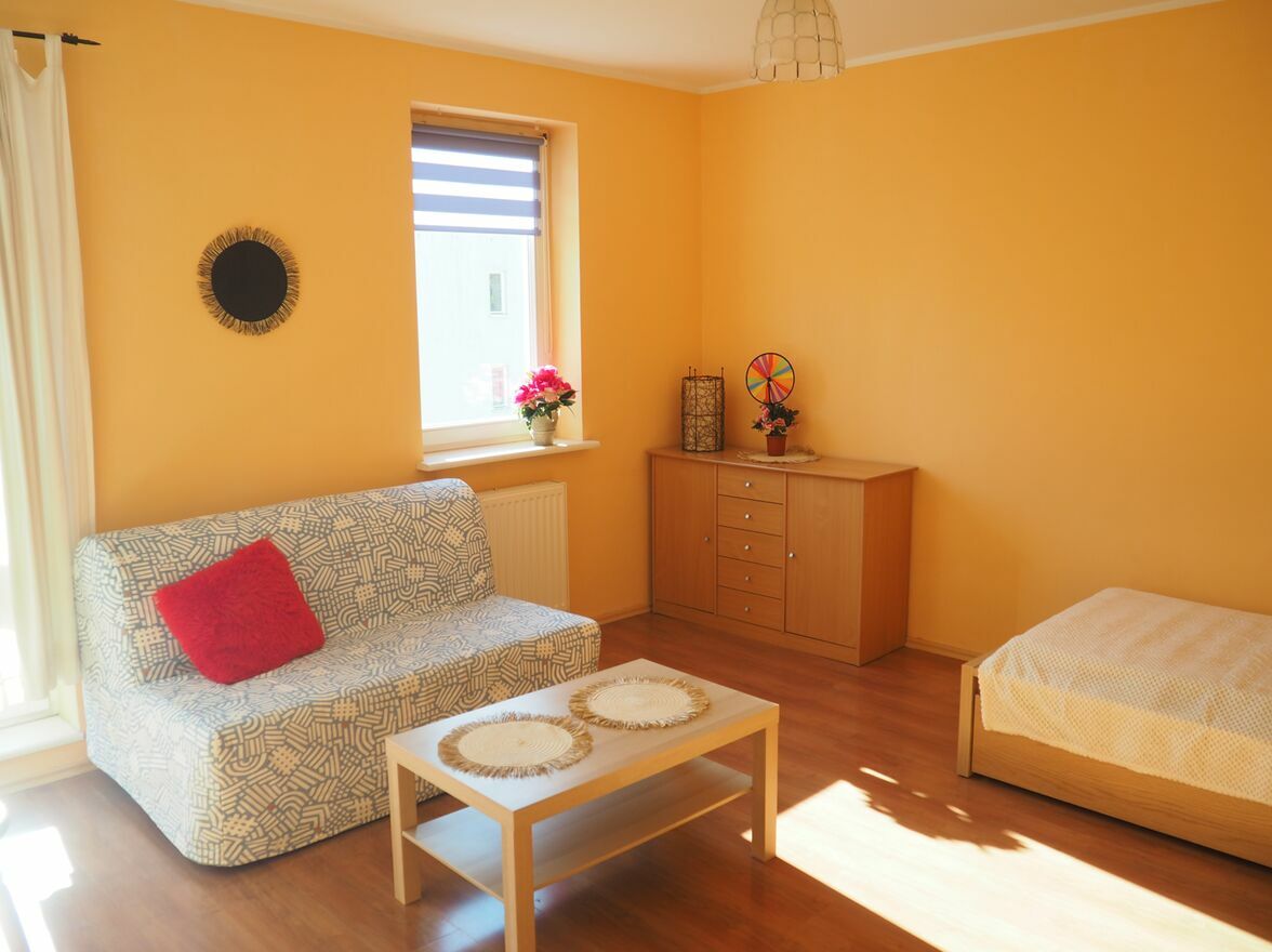 - w pokoju: m.in. komoda + rozkładana 2-osobowa sofa z opcją spania + pojedyncze łóżko z pojemnikiem na pościel, stolik kawowy; na życzenie możliwość wstawienia dużego stołu/biurka