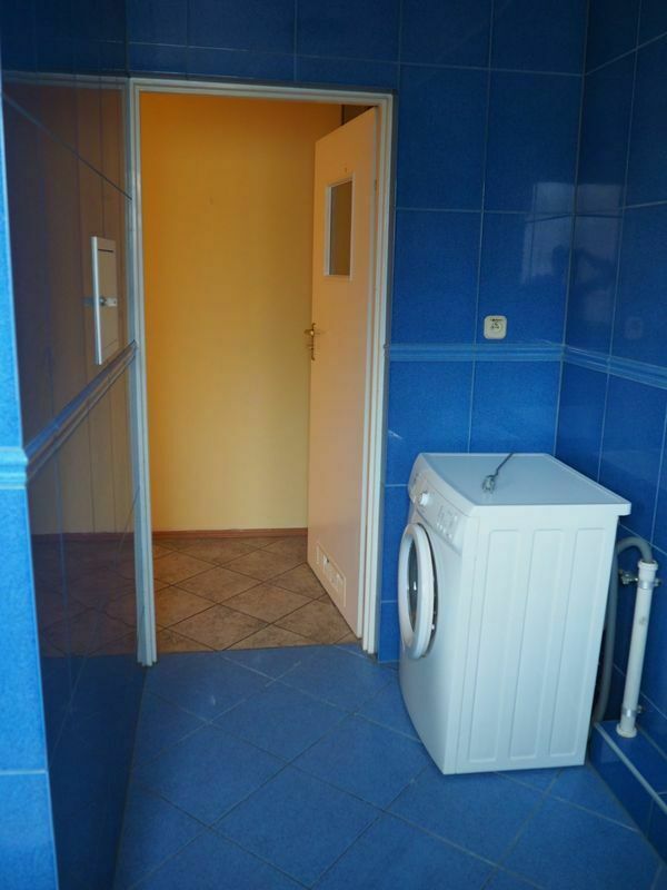 - w łazience: przestronne pomieszczenie z pralką i kabiną prysznicową
