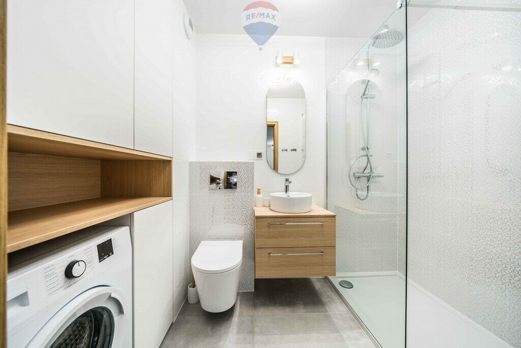 Mieszkanie jest wykończone z dbałością o detale, zapewniając