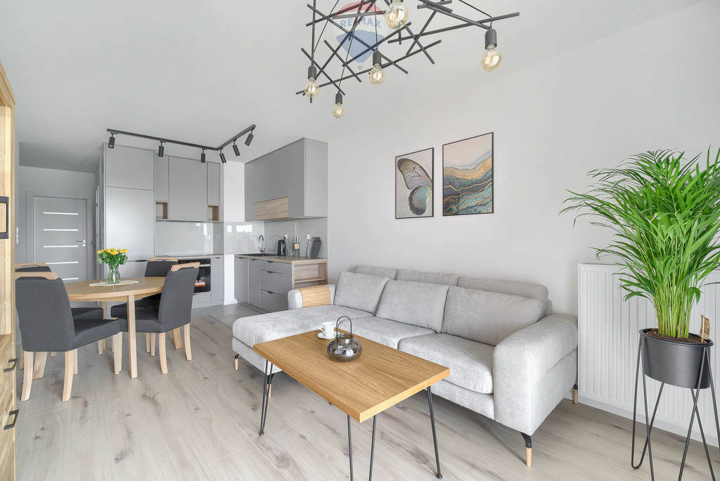 * przestronny salon z aneksem kuchennym, częścią wypoczynkową i