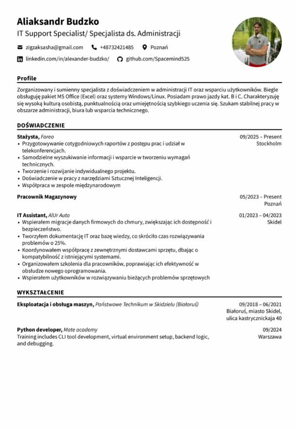 IT ASSISTANT, PYTHON DEVELOPER, OPERATOR WÓZKA WIDŁOWEGO