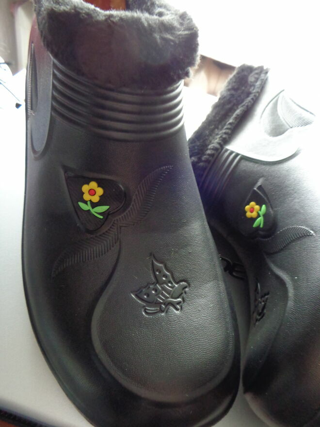 kalosze nowe połówki z ocieplaczem , czarne rozmiar 40 , długie na zewnatrz 27 cm. w środku 25,5 cm.eliza