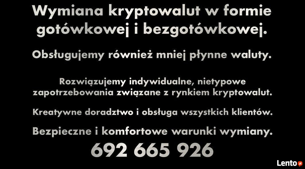 Wymiana kryptowalut w formie gotówkowej i bezgotówkowej.