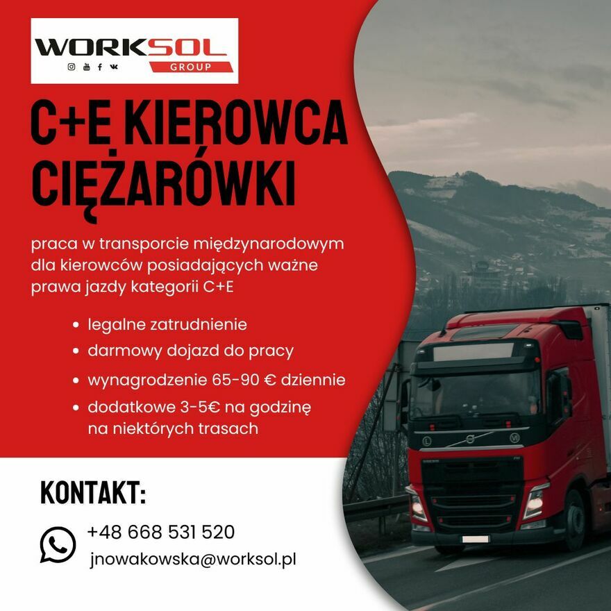 KIEROWCA C+E – transport międzynarodowy! (okolice Poznania)
