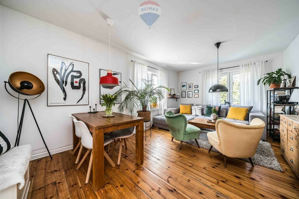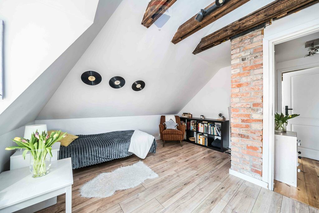 drewniane podłogi, ceglane ściany, jasne pomieszczenia oraz