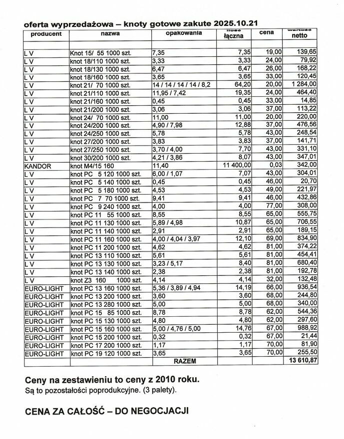 Prezentuję ofertę wyprzedażową na knoty gotowe - zakute, do produkcji zniczy, wkładów do zniczy i świec.W tabeli (zdjęcie nr 3) znajdują się ceny z lat 2008 - 2010. Dlatego są tak małe.