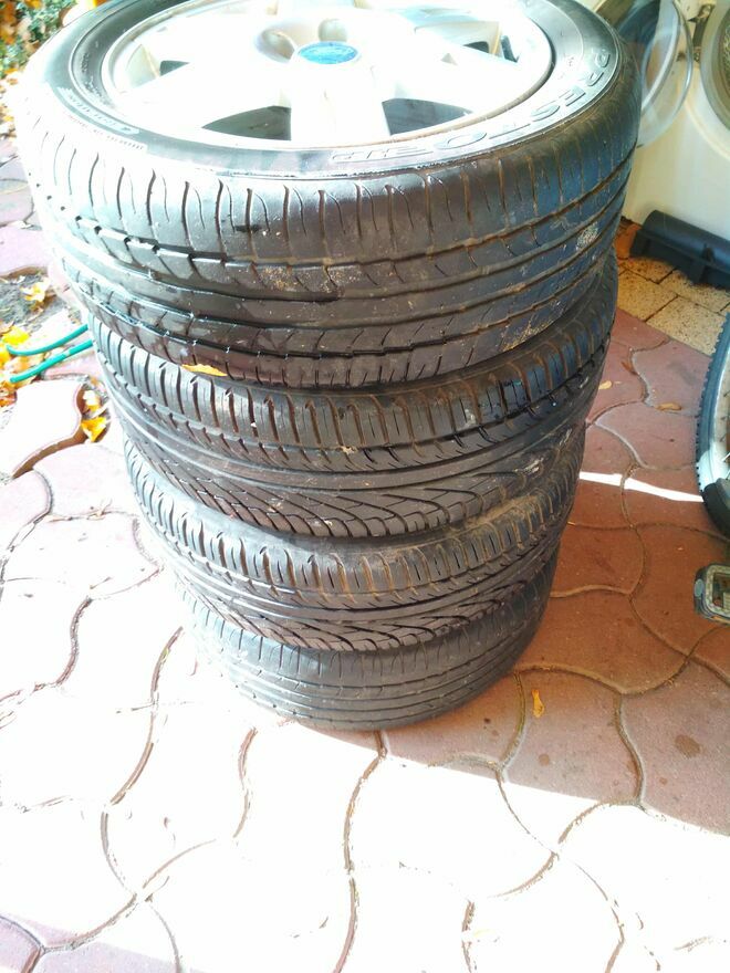 Oryginalne alufelgi z kapslami od Mondeo MK3+ opony 2 lepsze 2 gorsze dębica michelin jak na foto