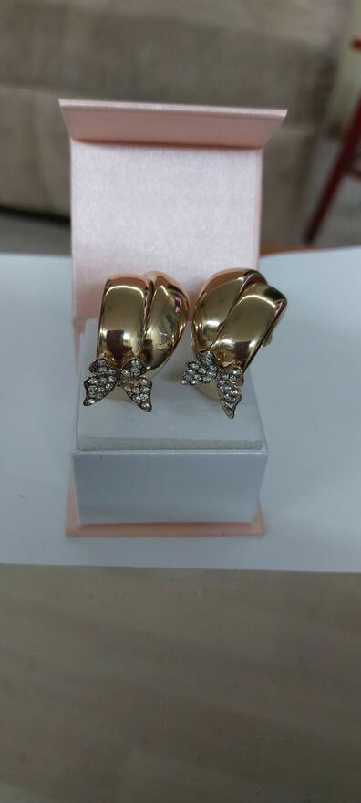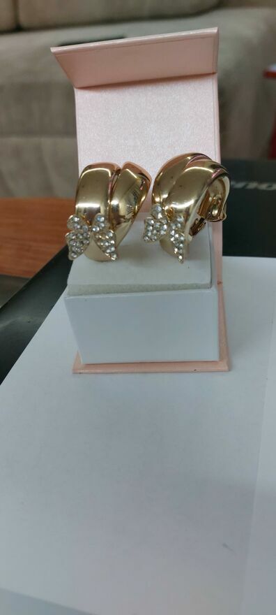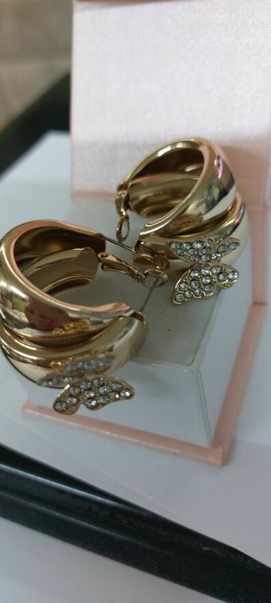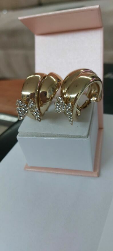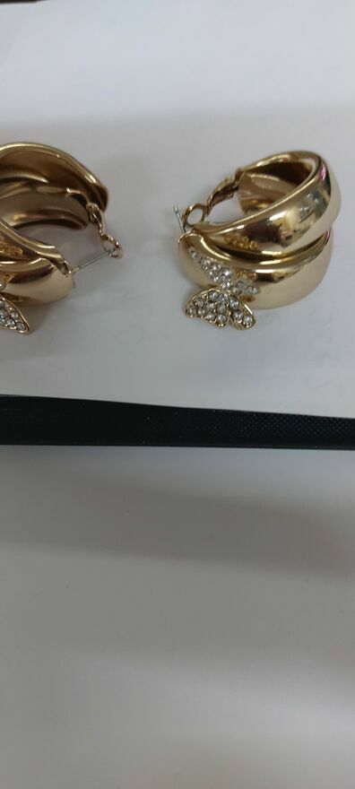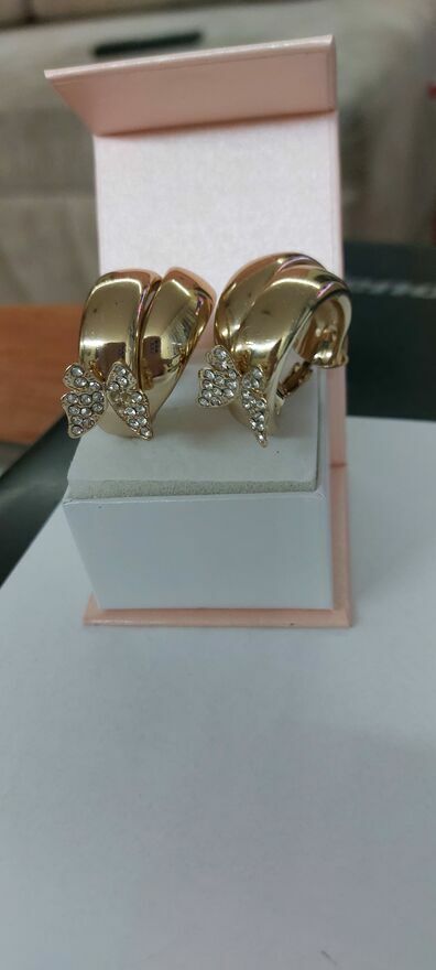 Witam .Mam do sprzedania Kolczyki pozłacane w kształcie kokardki szerokie z ozdobnymi motylkami wysadzone cyrkoniami .Majka