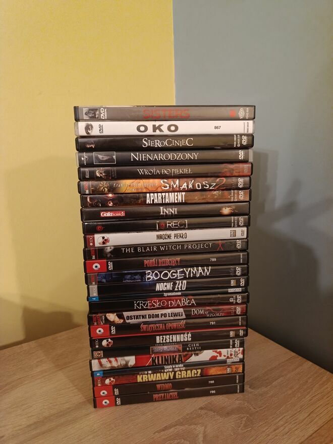 Sprzedam kolekcje horrorów 25 płyt DVD / 26 filmów . Wszystkie filmy odtwarzają się bez problemu , obejrzane przed sprzedażą. Na płytach możliwe śladowe ryski. Zapraszam do zakupu.Tytuły: