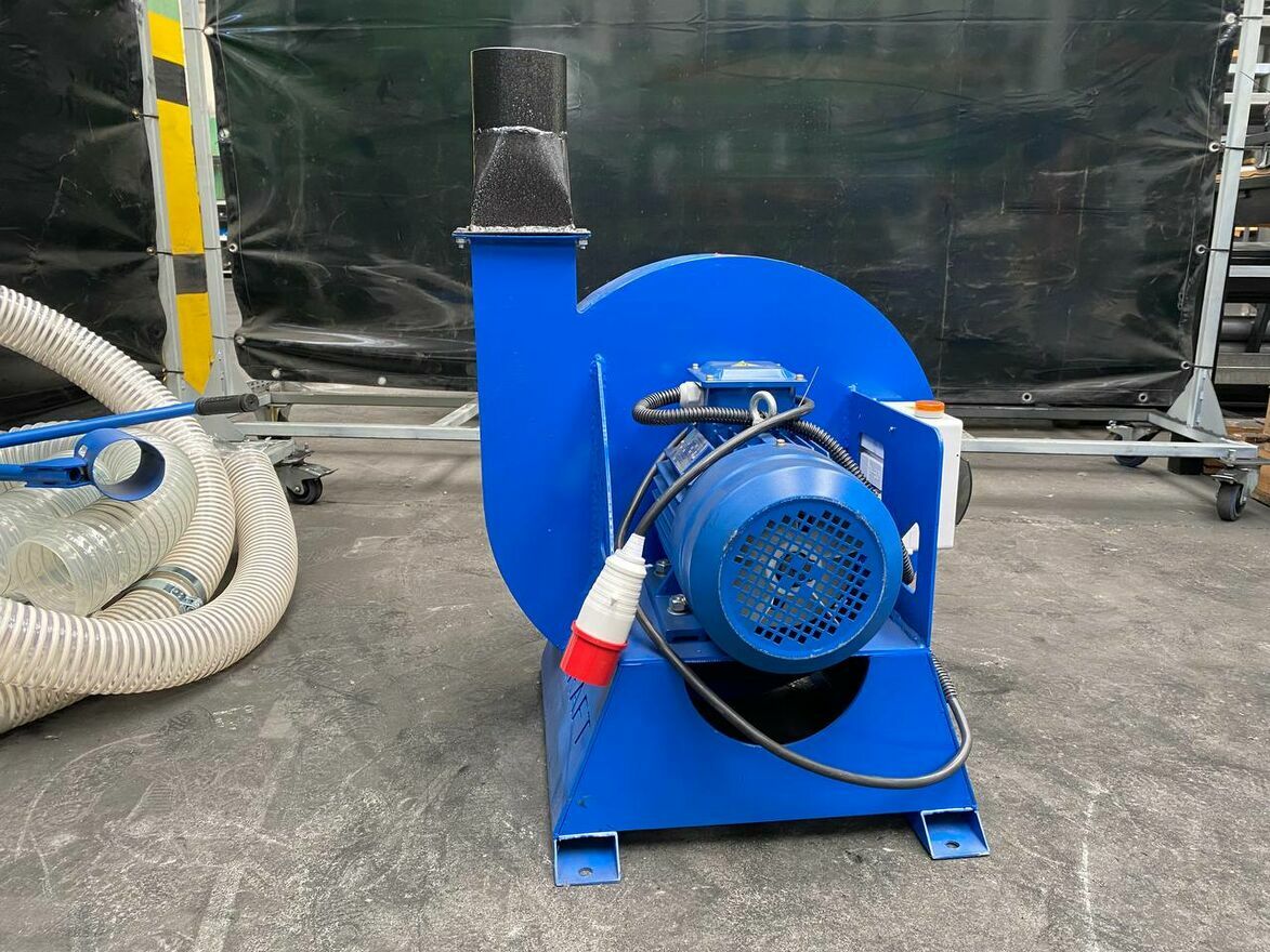 Rozdrobniony materiał jest następnie kierowany do komory wentylatora, skąd jest przenoszony przez rurę wylotową i elastyczny przewód ciśnieniowy do podajnika magazynowego lub mieszalnika.