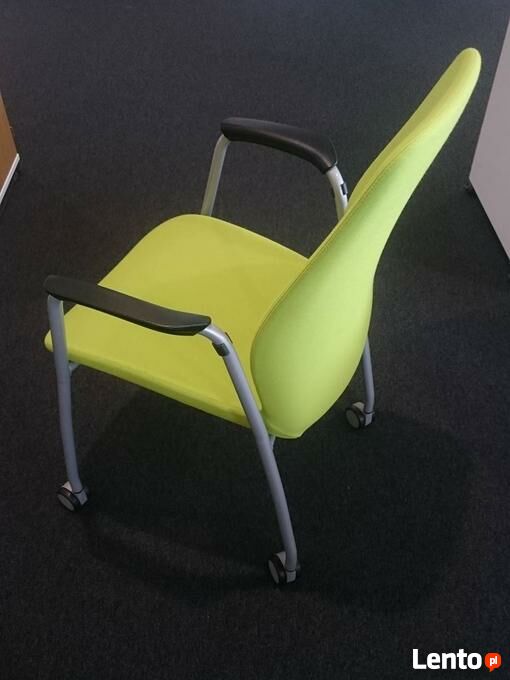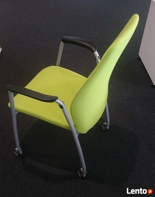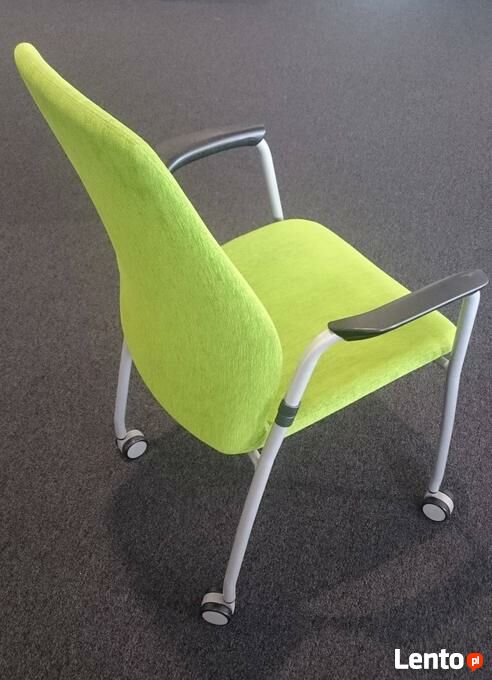 Podłokietniki stałe z nakładkami z poliuretanu. Rama metalowa w kolorze srebrnym mat.