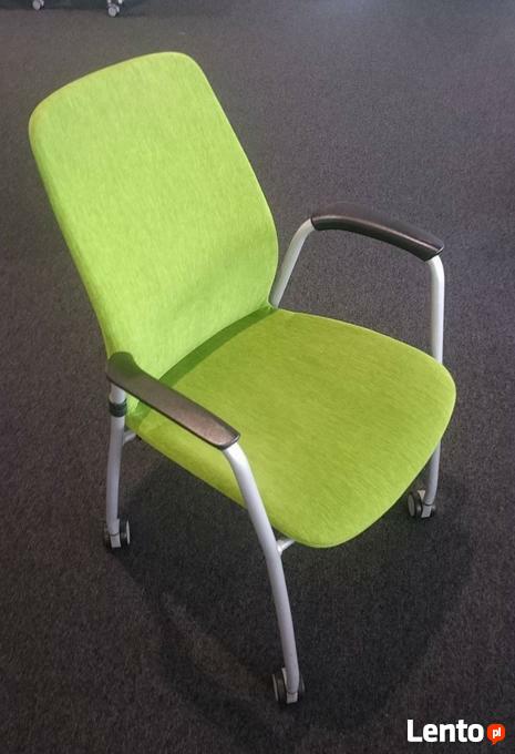 Komfortowe krzesło biurowe marki Kinnarps.Siedzisko i oparcie tapicerowane tkaniną, siedzisko sprężynowane.