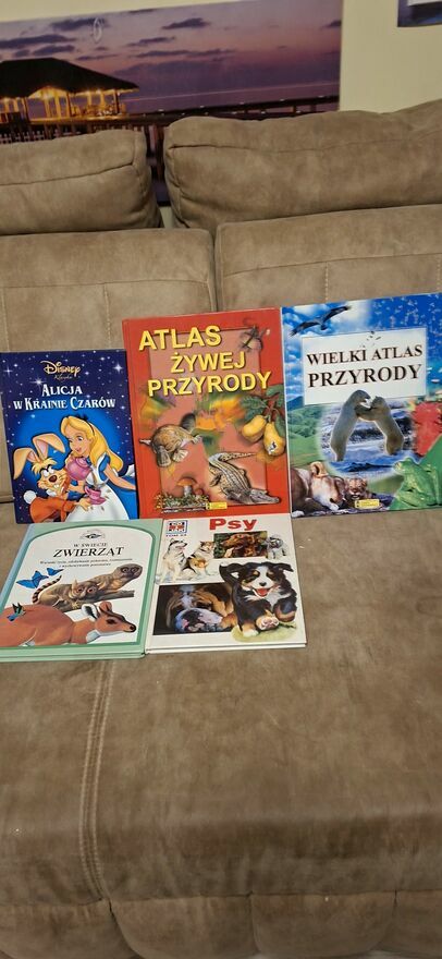 Witam .Mam do sprzedania książki dla dzieci o tematyce przyrodniczej i bajkowej .Atlas Źywej Przygody .Alicja w krainie czarów Disneya ,Psy , W świecie zwierząt,Wielki atlas przyrody .Stan bardzo dobry .Cena za całość 40 zł.Majka