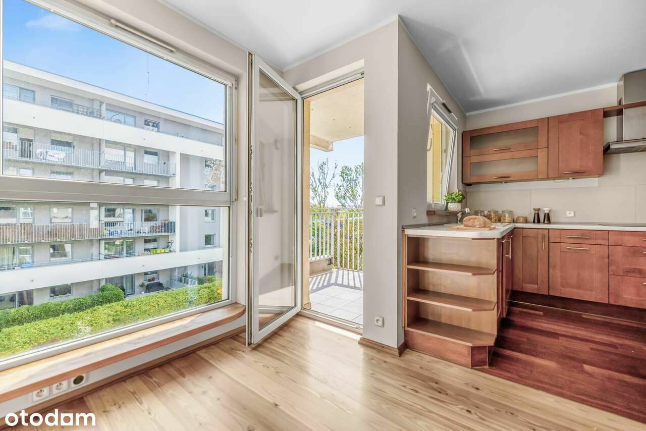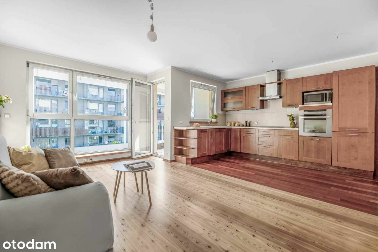Mieszkanie jest dwustronne – okna wychodzą na dwie strony świata (wschód-zachód), dzięki czemu wnętrze jest słoneczne i pełne naturalnego światła przez cały dzień.