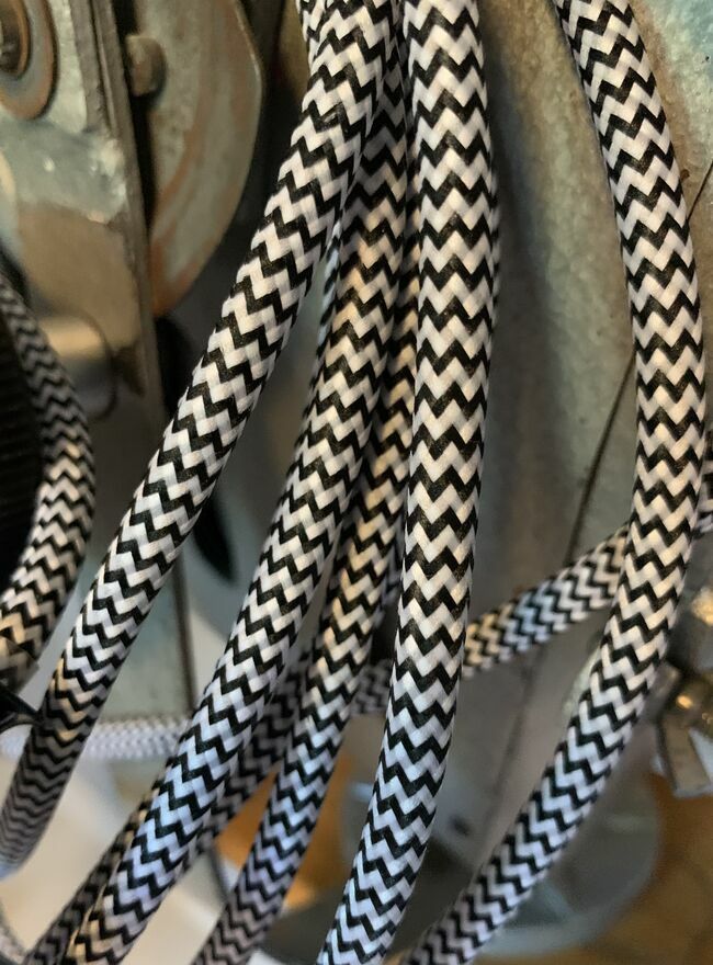 Przewód prądowy w otulinie bawełnianej materiałowej ( zebra ) czarno białej ponad 5 metrów.