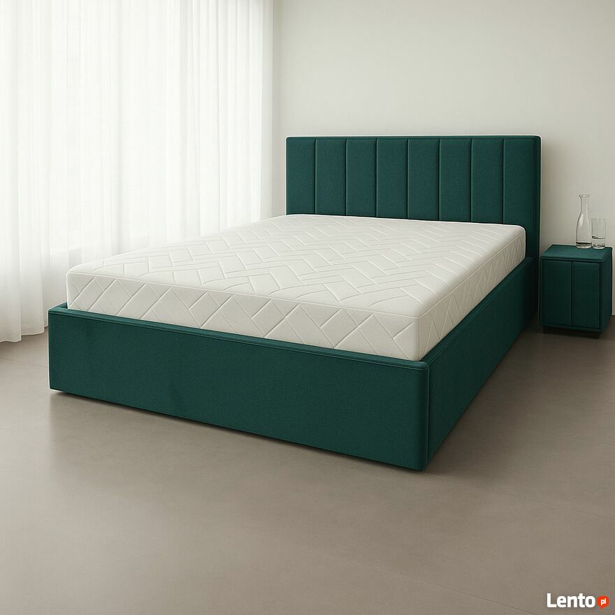 Klasyczne łóżko ze stolikiem nocnym tapicerowanym --SMERALDO--Komplet idealny do każdej sypialni ! Ponaczasowe łóże małżeńskie które nie wychodzi z mody ! Stolik nocny tapicerowany w tym samym kolorze , będzie idealnym dopełnieniem każdej sypialni ! Metalowy stelaż, zapewni stabilność i trwałość.