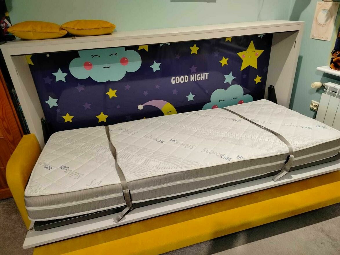 WALL BED łóżko w szafie półkotapczan 90x200 z sofą OKAZJA UNIKAT4 letnie łóżko chowane w szafie z sofą oraz materacem szuka nowego młodego użytkownika