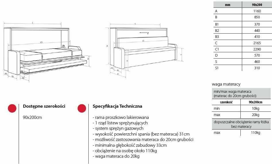 łóżko w szafie półkotapczan 90x200 z sofą OKAZJA UNIKAT