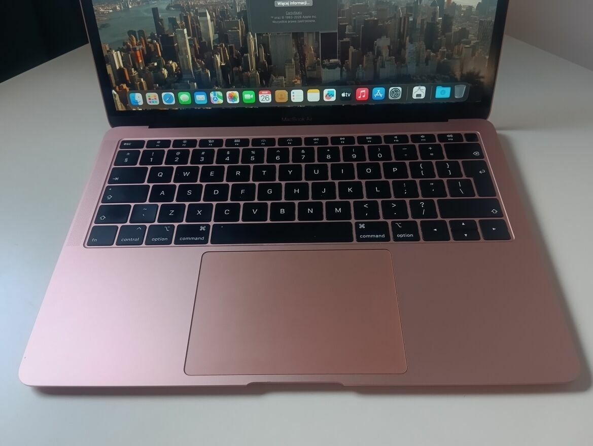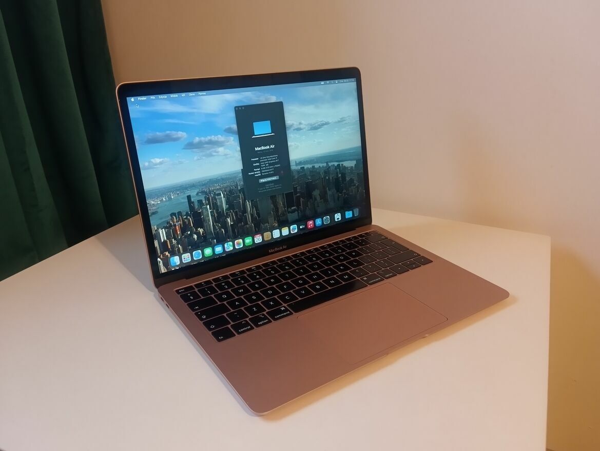Witam, zapraszam do zakupu MacBooka AIR 13,3” A1932 2018 kolor złoty.Laptop jest zadbany, można sklasyfikować go na A-, sprawny w 100 procentach.