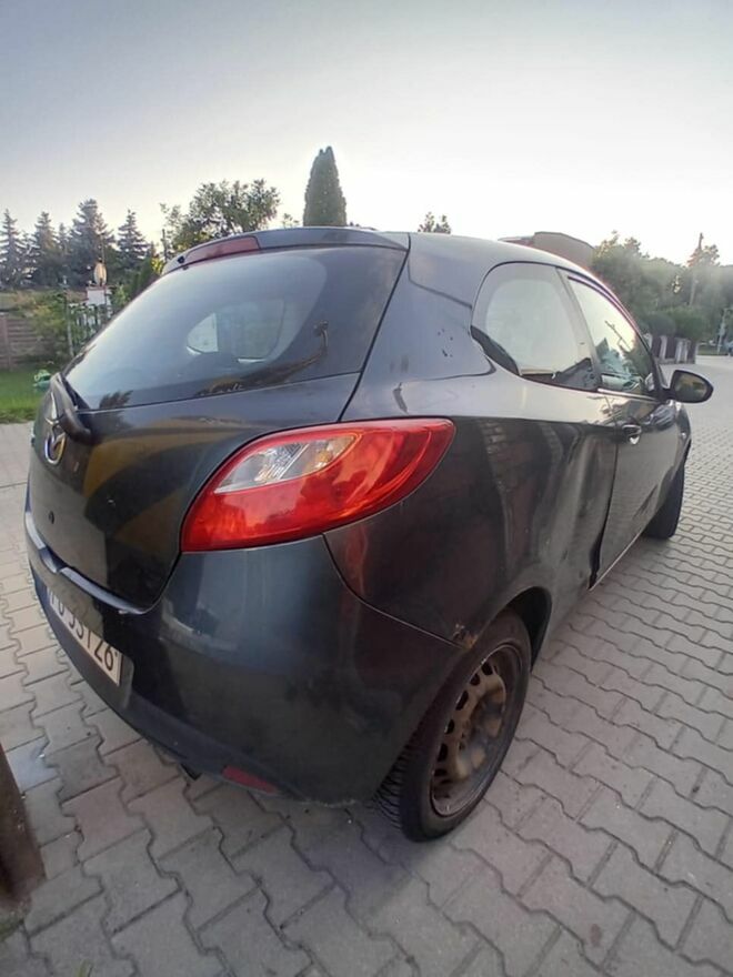 Mazda 2 – 1.4 Diesel, 2008 r., sprawnaSprzedam Mazdę 2 z oszczędnym dieslem 1.4. Auto jeździ na co dzień, w moim posiadaniu od 5 lat, silnik i skrzynia w dobrym stanie. Blacharka do poprawek (widoczne wgniecenia/rdza). Klima