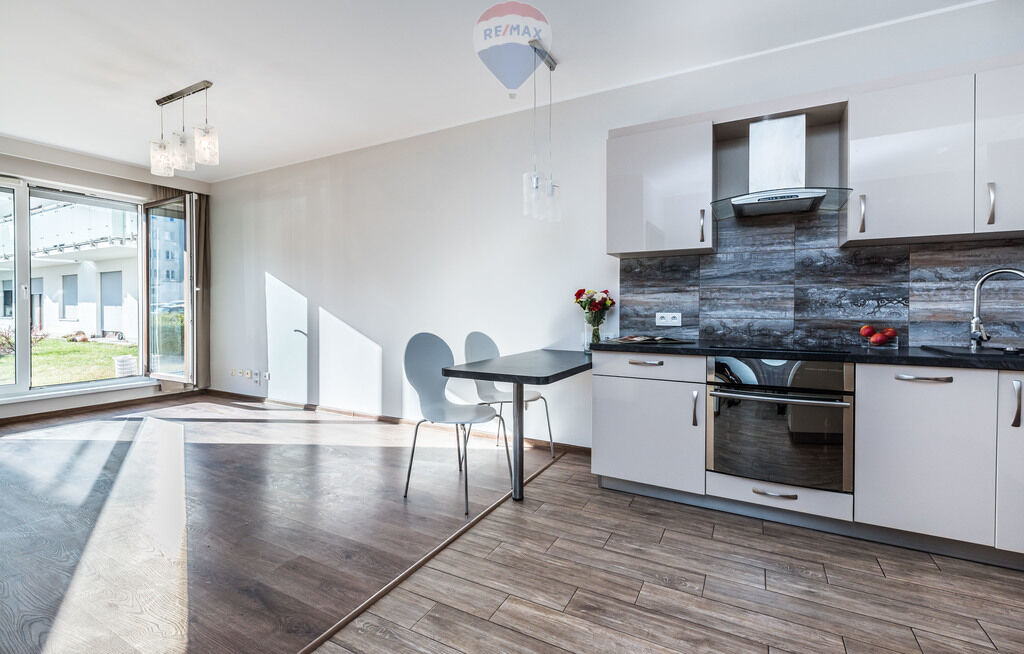 Usytuowane na parterze ogrodzonego osiedla w niskiej zabudowie.
