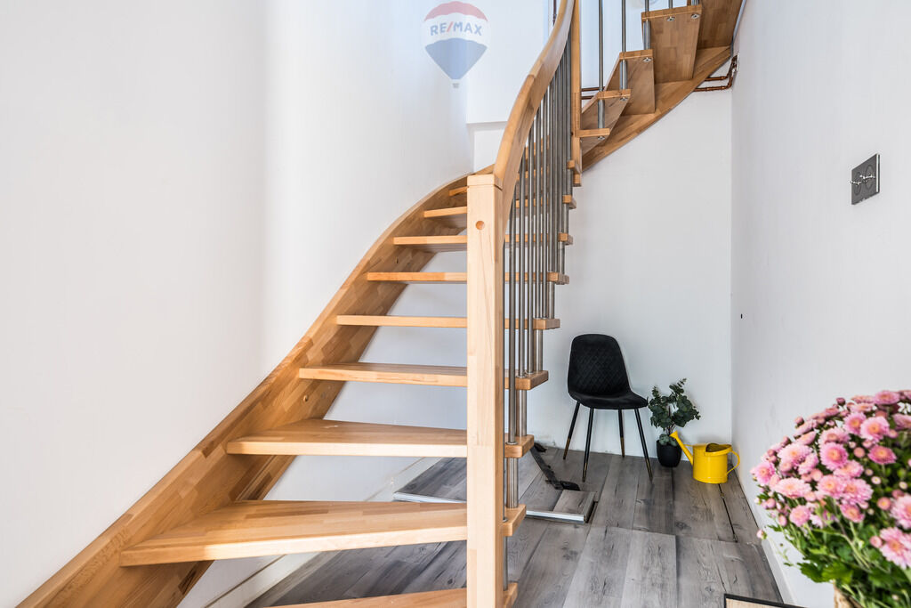 Poziomy łączy solidna, drewniana klatka schodowa, która dodaje