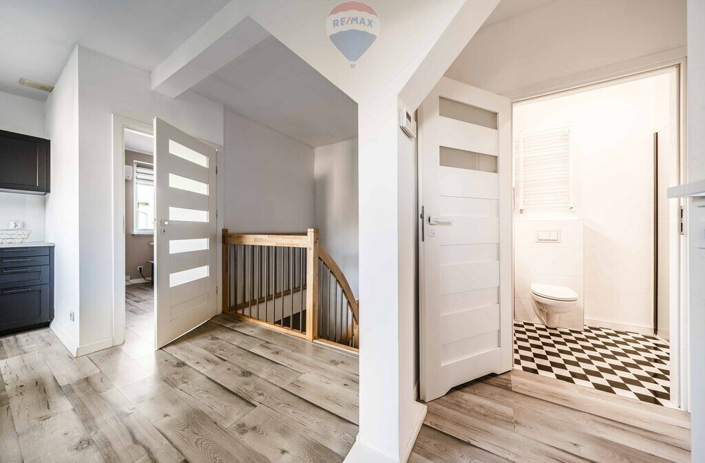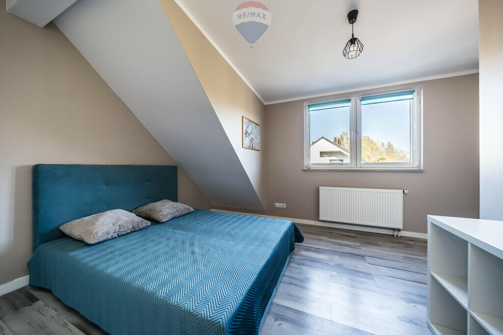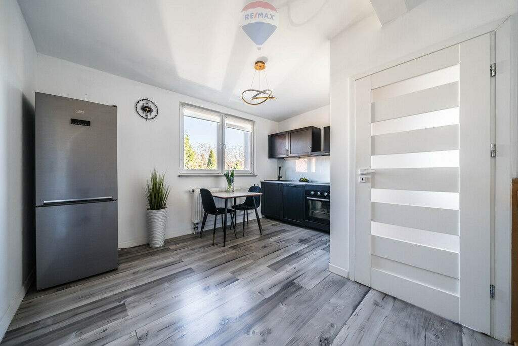 Piętro: dwa niezależne, jasne pokoje, otwarta kuchnia z pełnym